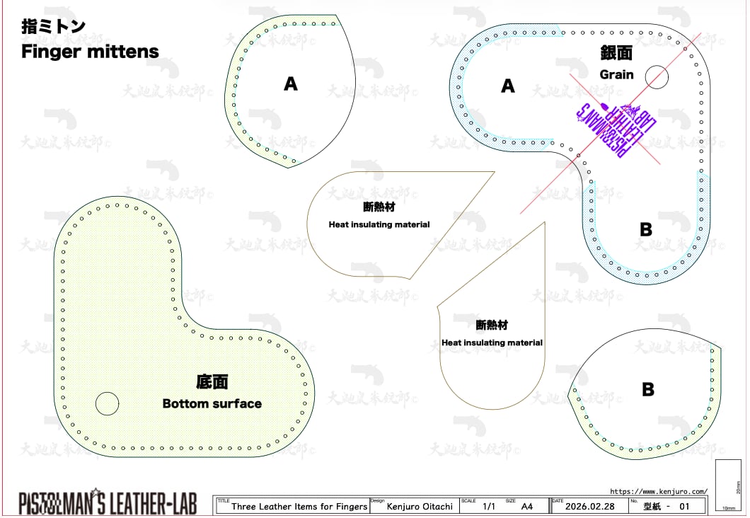 型紙、組立図面、レザーパーツ8枚、ロー引き糸、断熱シート4枚、アイレット2組