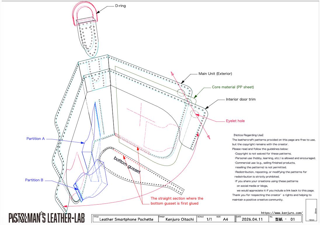 DIYキット イタリアンレザー・スマホポシェット/Leather Smartphone Pochette “ポッケ”