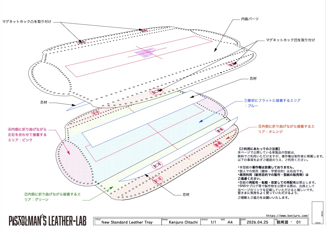 新しい定番のレザートレイが作れるオリジナル型紙データです。